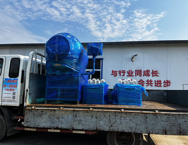 廣東魚(yú)片加工企業(yè)定制款滾揉機(jī)2臺(tái)搭配液壓上料器、提升料車(chē)發(fā)貨