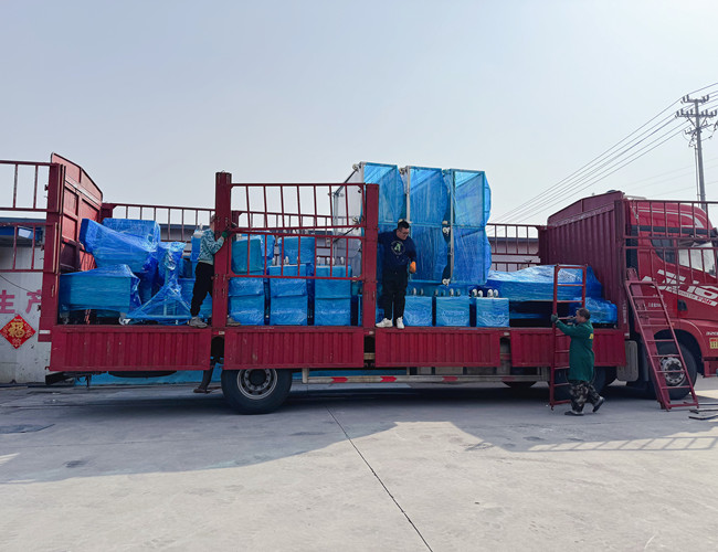 河南客戶訂購滾動式真空包裝機 氣動鹽水注射機各一臺涼肉架6臺氣泡解凍池2個提升料車20個完工發(fā)貨