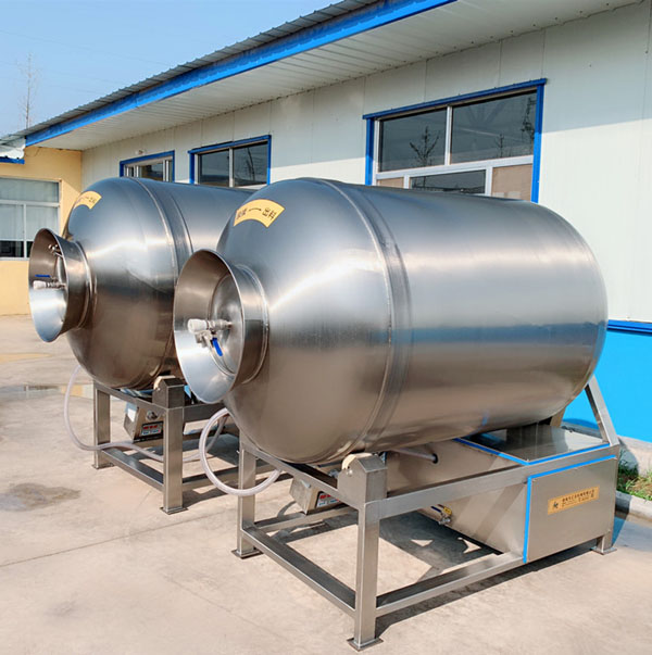 真空滾揉機(jī)也叫真空腌制機(jī),肉類真空滾揉機(jī)主要是將加工的肉類,如牛肉,羊肉,雞肉,鴨肉,鵝肉,豬肉,魚肉,蛋及蔬菜,果品放在真空狀態(tài)內(nèi),可提高調(diào)味品進(jìn)入肉品的速度,并限度的保持肉內(nèi)的水分。真空滾揉機(jī)是將塊狀肉在真空狀態(tài)下,通過筒體轉(zhuǎn)動進(jìn)行滾揉。