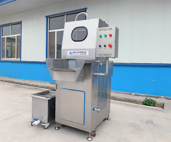 鹽水注射機(jī)是將鹽水注入肉中充分腌漬,注入配制的水溶液的肉塊能使肉質(zhì)嫩化,松軟,提高了肉制品的品位和出品率。