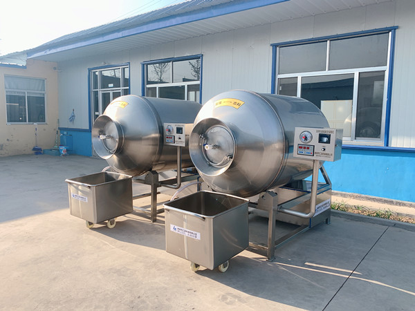 真空滾揉機(jī)作用主要是牛羊肉塊中能量轉(zhuǎn)換的物理過程,它促進(jìn)了液體介質(zhì)(鹽水)的分布,改善了肉的嫩度,提高了鹽溶性蛋白的提取和向肉塊表面的移動(dòng)。在可控制的滾揉環(huán)境中保水力、出品率和總的產(chǎn)品質(zhì)量均可提高。滾揉系統(tǒng)能提供盡可能多的參數(shù)控制,