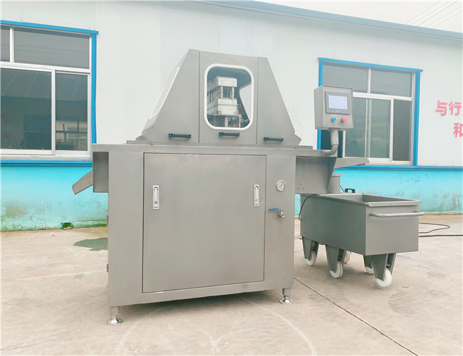 鹽水注射機有氣動、機械、變頻等幾種。鹽水注射機是將鹽水及輔料通過鹽水注射、真空滾揉,注入肉中的料液充分腌漬,滲透,疏松肌肉組織結構,有利于肌球蛋白溶出,并且由于添加劑對原料肉離子強度的增強作用和蛋白等特點的調整作用,注入配制的水溶液能使肉質嫩化、松軟,從而提高了肉制品的出品率和改善肉制品的嫩度和口感。 可根據不同工藝要求,調整步進速度,步進距離,壓肉板間隙及注射壓力,將腌漬液均勻連續(xù)地注入肉中,達到理想的注射效果。