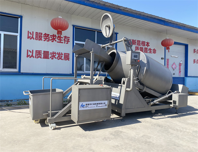 真空滾揉機(jī)是在真空狀態(tài)下,利用物理沖擊的原理,讓肉在滾筒內(nèi)上下翻動(dòng),相互撞擊、摔打,達(dá)到滾揉、腌漬效果,使肉均勻的吸收腌漬,提高肉的結(jié)著力及產(chǎn)品的彈性,通過滾揉、按摩能使肉體蛋白質(zhì)分解成水溶性蛋白,易被人體吸收,同時(shí)能使添加料(淀粉等)與肉體蛋白質(zhì)互為融合以達(dá)到肉質(zhì)變嫩,口感好,讓產(chǎn)品在滾筒內(nèi)膨脹、縮小了往復(fù)運(yùn)動(dòng),改善了肉組織的結(jié)構(gòu),提高了切面效果。